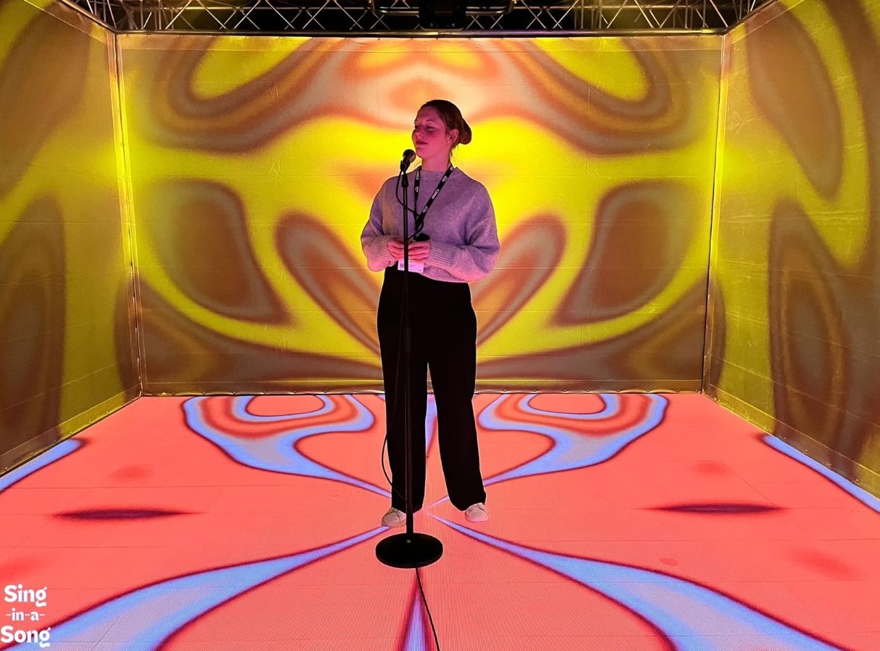 It’s karaoke, and more…It’s an immersive show into a virtual world.It’s a selfie moment, driving social media engagement.